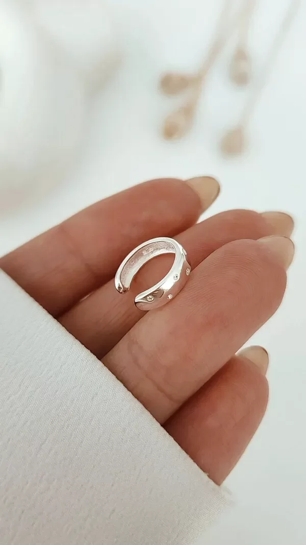 Aro a presión (no se necesita perforación). Según su tamaño, se coloca en la parte superior de la oreja o al medio de la misma.