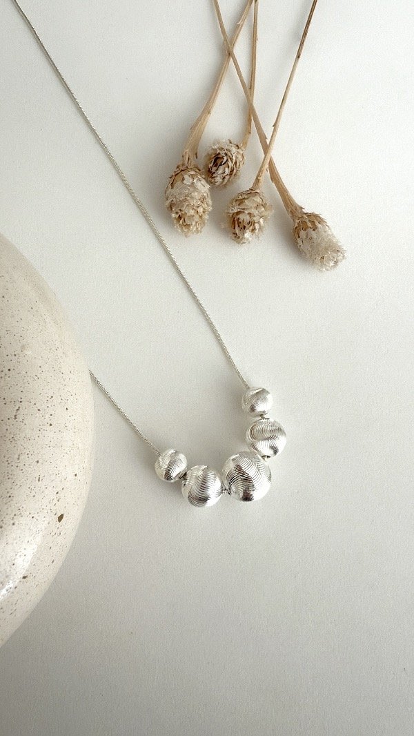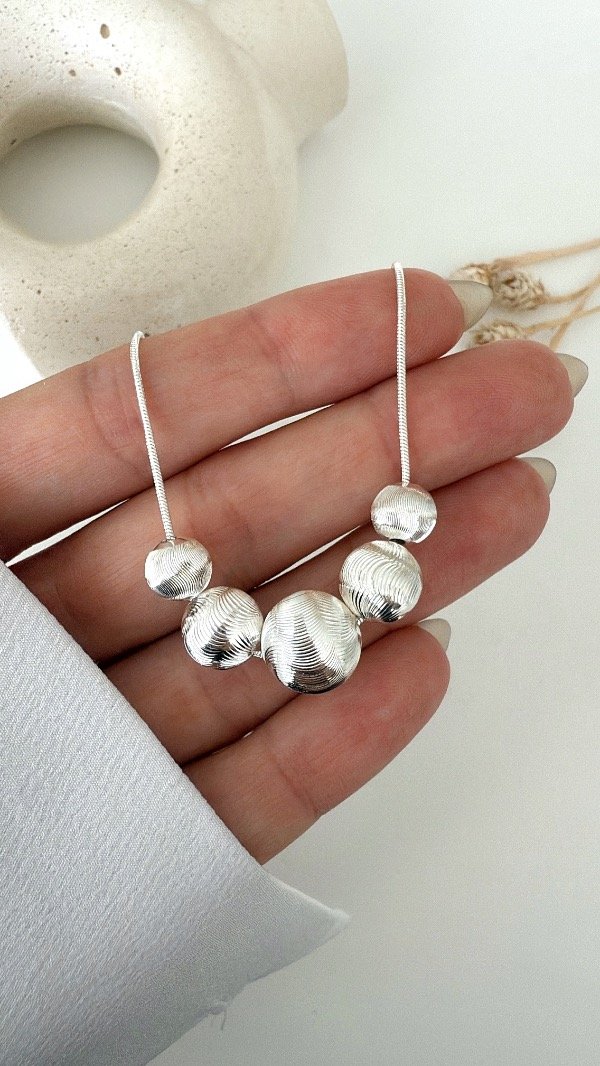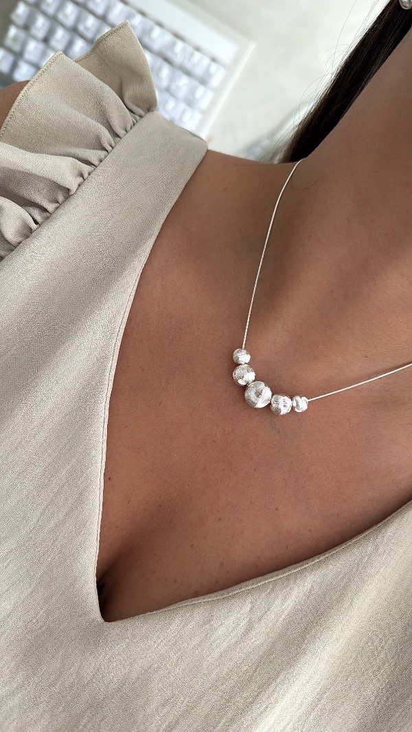Conjunto 40cm cola rata 5 bolitas textu ACERO BLANCO