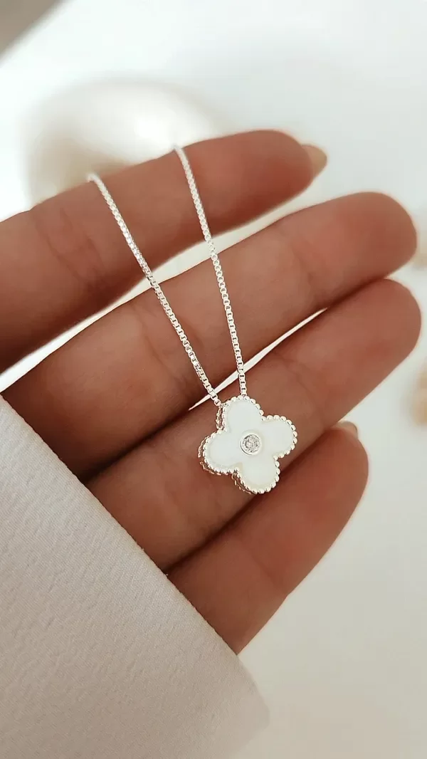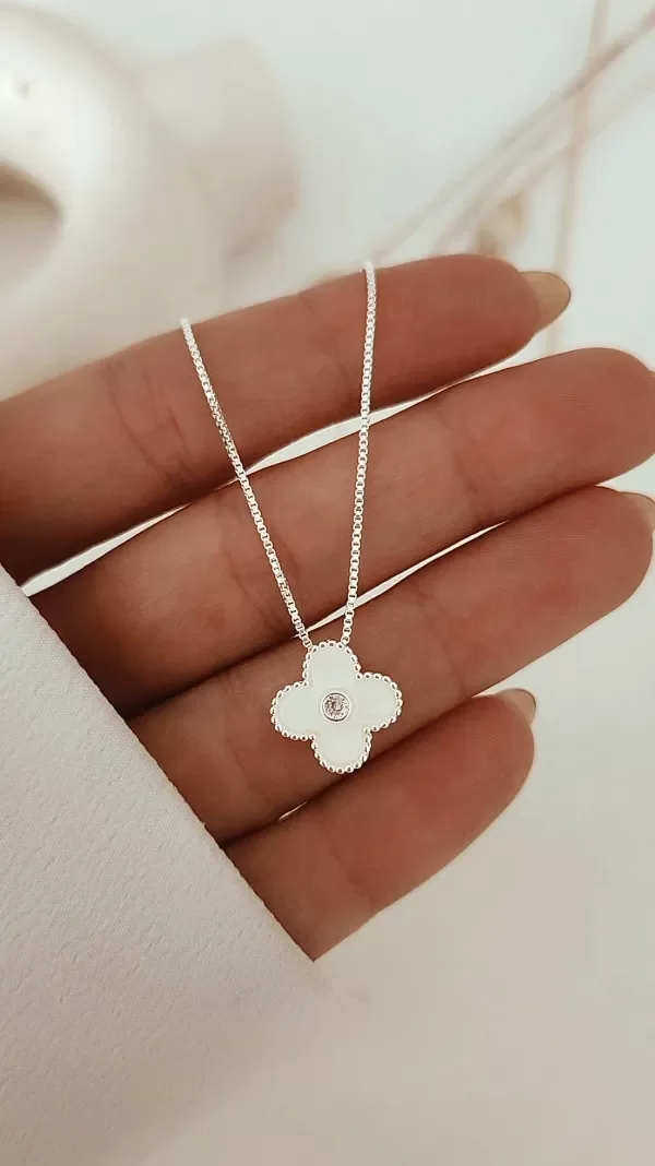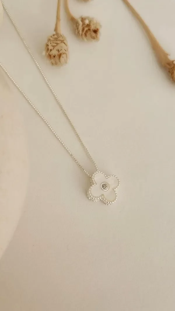 Conjunto 45cm dije flor 12mm simil nácar ACERO BLANCO